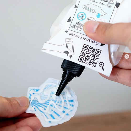 Upute za uporabu: Napravite prethodni test na bilo kojoj novoj površini. Nanesite ljepilo kistom ili špatulom na poleđinu tkanine. Položite tkaninu. Zaštitite papirom za pečenje (ili nečim sličnim) i glačajte na postavci za pamuk, bez pare, 45 sekundi do 1 minute, uz stalan pritisak. Za deblje motive (poput zakrpa), preporučuje se glačanje obje strane projekta. Ostavite da se potpuno ohladi prije rukovanja. Tkanina se može prati u perilici rublja na 30 °C.