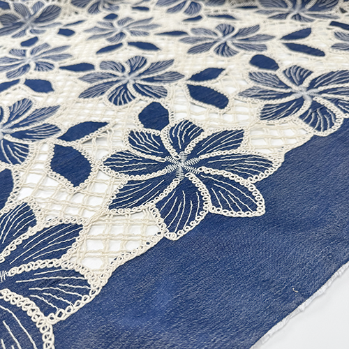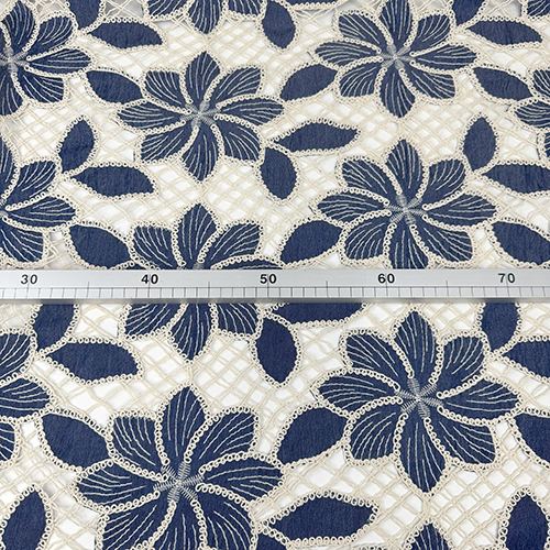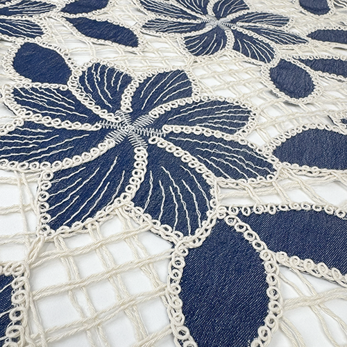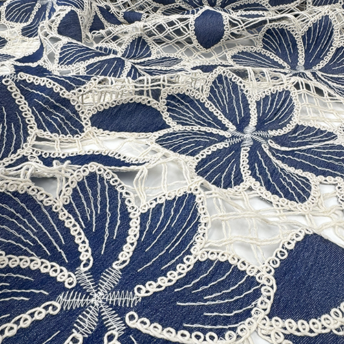 Efektna tkanina sa štikanim i vezenim cvjetovima na jeansu.