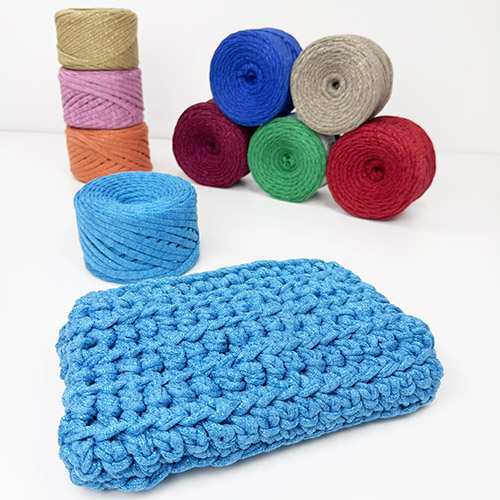 Pletena pređa sa visokim udjelom pamuka i metaliziranim nitima idealna za stvaranje torbica, ruksaka i sličnih modnih dodataka!